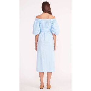 Crafted of crisp cotton, STAUD's chic Reese shirtdress showcases an off-the-shoulder bodice and self-tie belt.