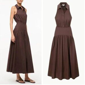NWT STAUD Romy Midi Dress Sz6/10 Earth Cafe Brown Sleeveless Collared