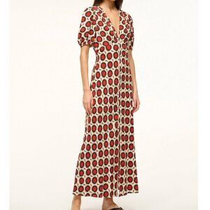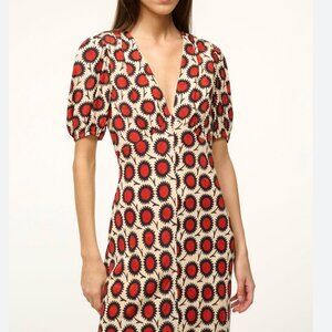 NWT STAUD Vaughn Midi Dress Sz2 Sunflower Floral Red Cream Black French Wedding