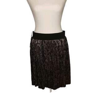 NWT STELLA & DOT Silver Metallic Skirt Womens Large Stretch Pull-On Fully Lined