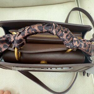NWT STEVE MADDEN BEVELYN SCARF SATCHEL CROSSBODY BAG CREDIT CARD CASE CHOCOLATE