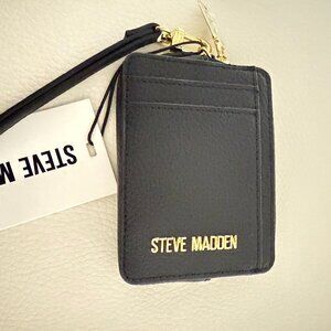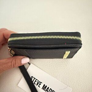NWT STEVE MADDEN BPIPPER ZIP AROUND CARD CASE WRISTLET CLUTCH BAG BLACK