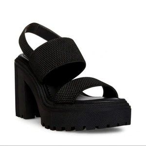 STEVE MADDEN COOL PLANET Black Platform Block Heel Sandals