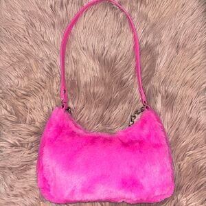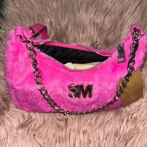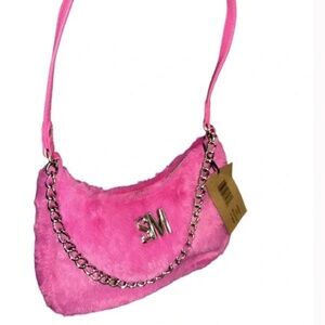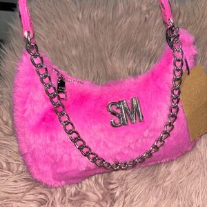 NWT STEVE MADDEN HOT PINK FAUX FUR BPAULA SHOULDER PURSE W/ CHAIN