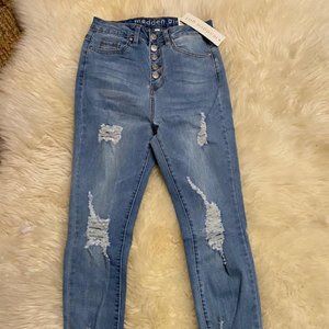 NWT STEVE MADDEN Madden Girl Women ICON Ultra High-Rise Ripped Skinny Jeans