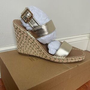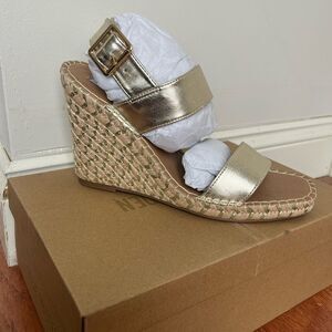 NWT STEVE MADDEN GOLD ESPADRILLE WEDGE SANDALS SUMMER VACATION SHOES