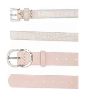 NWT STEVE MADDEN Women's 2 Faux-Leather Belts Set Light Pink and Cream Large
