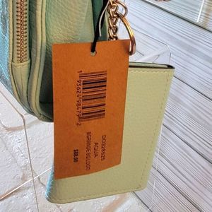 NWT STEVE MADDEN BGRANDE SQUARE LOGO AQUA CROSSBODY PURSE BAG DOME
