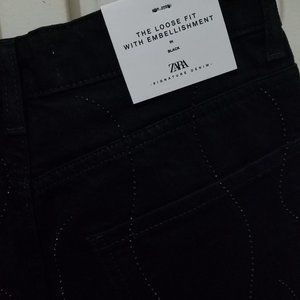 NWT STRAIGHT CUT MID- HIGH RISE RHINESTONE BLACK JEANS ZW COLLECTION