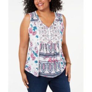 NWT STYLE & CO White Floral Sleeveless V Neck Top
