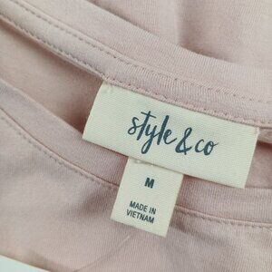 NWT STYLE&CO Basic Top Long Tee M(8-10) Pink Cotton Knit Pullover Casual
