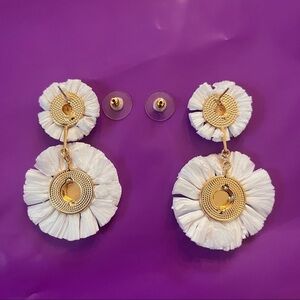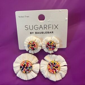 NWT SUGARFIX by BaubleBar stacked fringed drop raffia earrings w/itty beads