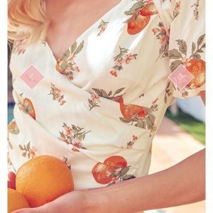 I adore the summer vibes of this sweet top! Summer Grove Puff Sleeve Top mixes a base hue of ivory with a florals and fruit print. This surplice style v-neck bodice looks fire!