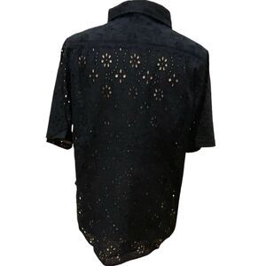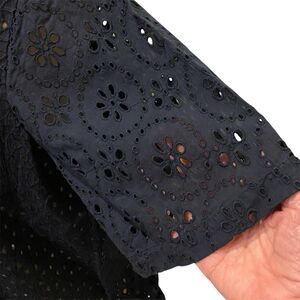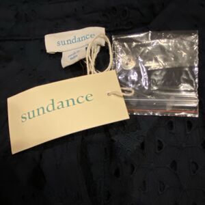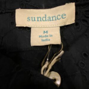 NWT SUNDANCE Sh Sleeve Eyelet Blouse Button Up Boho Academia Blue Preppy $47 M