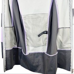 * Sporty, stylish rash guard in a gray and lavender color palette — perfect for paddle boarding, surfing, and other water adventures.