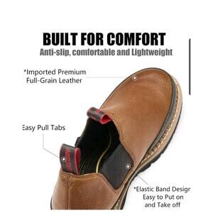 SUREWAY Unisex-Adult On Work Boots,Romeo Slip-on Casual Shoes for Men,Full Grain Leather,Pull On Industrial Construction Safety Boots/Shoes,Comfort Insole,Oil/Slip Resistant,EH Safety