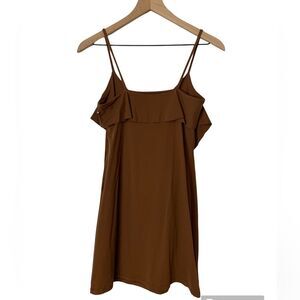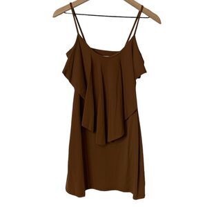 NWT SUSANA MONACO BROWN RUFFLED SPAGHETTI STRAPS MINI DRESS. Size Medium