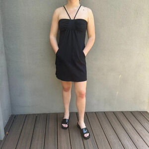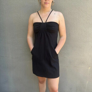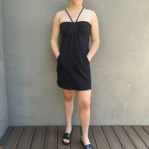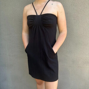 NWT SUSANA MONACO Black Knit Strappy Mini Dress w POCKETS! - size Medium
