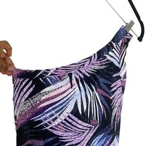 Swim Solutions Women's 8004825 Black Multi One Shoulder One Piece Swimsuit Sz 18