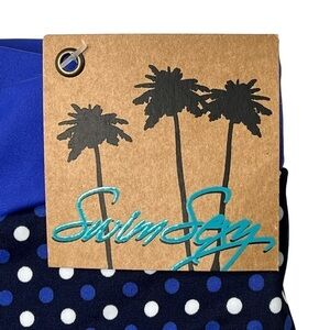 These NEW Swimsuits For All "Swim Sexy" swim bottoms has pretty periwinkle and white polka dots on a black background print. It's easy to match with a solid colored top.