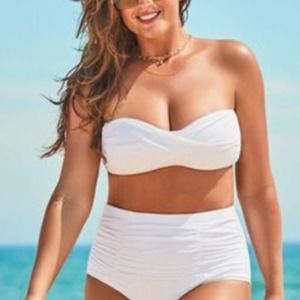 NWT SWIMSUITS FOR ALL White Convertible Bikini Top Size 14