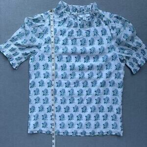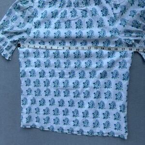 NWT SZ Blockprints X J. Crew smocked puff sleeve blouse in blue paisley size XXS