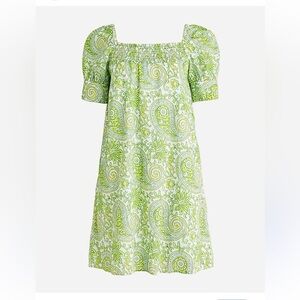 NWT SZ Blockprints x J.Crew Square-Neck Puff Sleeve Organic Cotton Mini Dress L