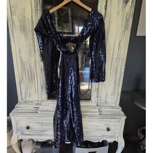 NWT Sabina Musayev Blue Sequin Cutout Mini Dress - Small