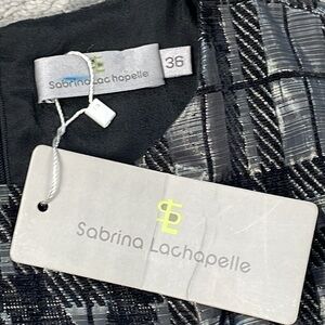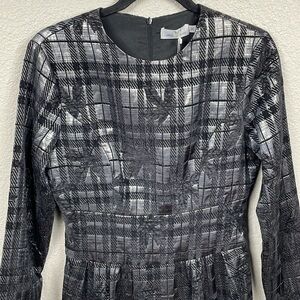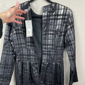 NWT Sabrina Lachapelle Textured Plaid Brocade Metallic Long Sleeve Dress Sz 36