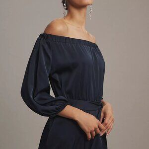 NWT | Sachin + Babi Kai Dress Midnight Blue Off The Shoulder Long Sleeve Midi