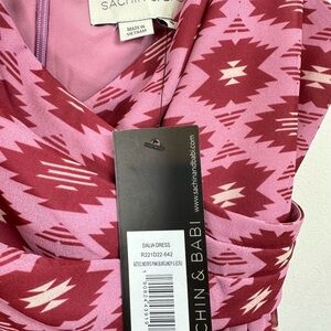NWT Sachin & Babi Size 6 Aztec Motif Dalia Midi Dress Pink Burgundy & Ecru