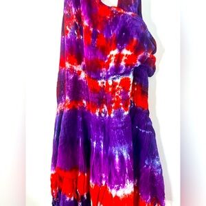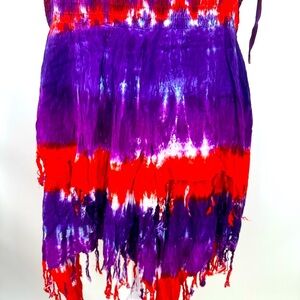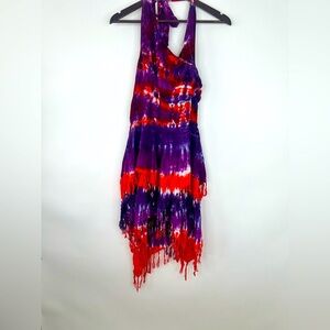 NWT Sacred Threads Tie Dye Halter Dress Tiered Frayed hem size Large