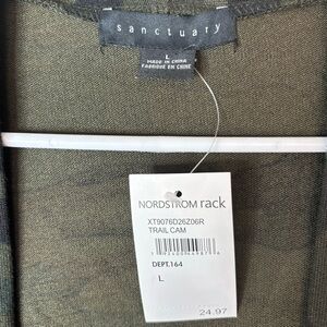 NWT Sactuary Camouflage Duster Black Green Pockets Open Sweatshirt Cardigan Sz L