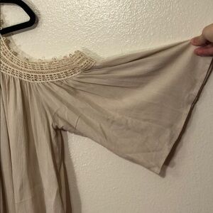 Never worn, still has the tag but it fell off! High quality, beautiful top. Flowy, cold shoulder with knit shoulder straps and collar.
