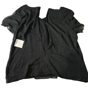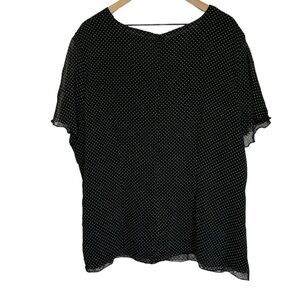NWT Sag Harbor Blouse Polka Dot Sheer Ruffles V-neck Office Workwear Size 2X