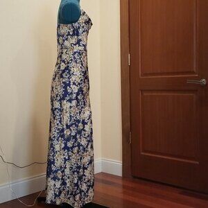 NWT Sage Drape Floral Slip Zipper Adjustable Spaghetti Straps Dress, size 12 blue