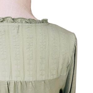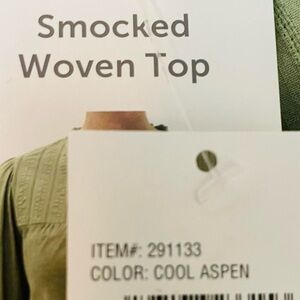 NWT Sage Green Long sleeve Woven Smocked Blouse