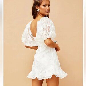 NWT Sage & Paige Mini Dress Womens XL White Lace Clarissa Puff Sleeves Babydoll