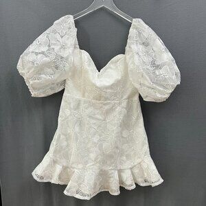 NWT Sage + Paige Mini Dress Womens XL White Lace Clarissa Puff Sleeves Babydoll