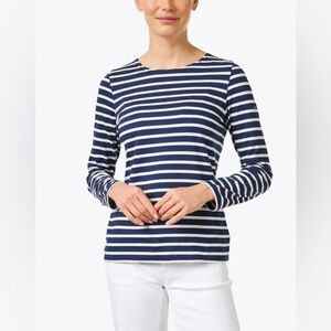 NWT Saint James Minquidame Navy and Ecru Striped Cotton Top Size 6 US / 38 FR