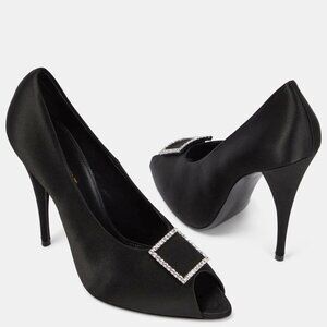 NWT Saint Laurent 115mm crystal-embellished satin peep-toe pumps Size: 37