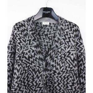 NWT Saint Laurent Geometric-jacquard Wool-blend Cardigan In Grey Size S