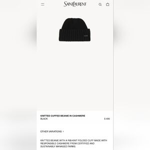 NWT Saint Laurent, Knitted Cuffed Beanie in Cashmere, Black
