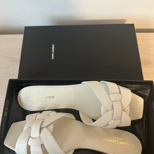 NWT Saint Laurent Tribute 10mm Flat Mule Sandals Sz 41.5 White Smooth Leather
