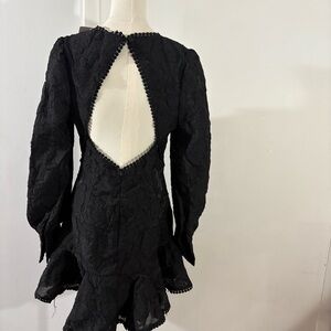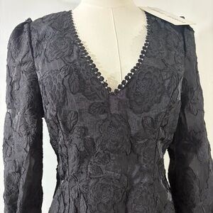 NWT Saints And Secrets Black Long Sleeve Dress V-Neck Open Back Sz L Ruffle Hem