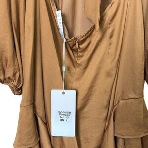 NWT Saints + Secrets Satin Open Back Dress Ruffle Hem Copper Size Size large