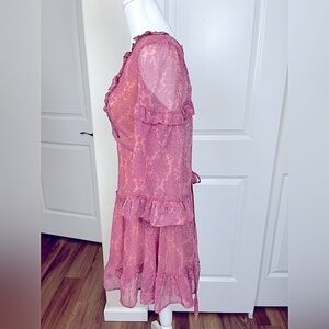 NWT Saints and Secrets pink floral mini dress. Size Medium.