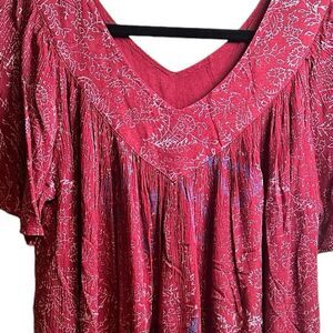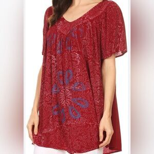 NWT Sakkas Women’s Red V Neck Floral Embroidered Top Blouse Shirt - Size OS