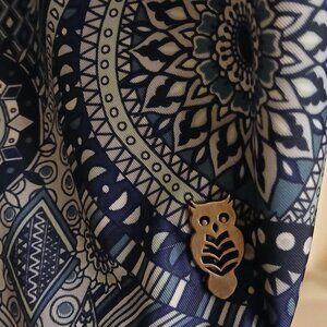 navy print, boho style, adjustable strap, removable cosmetic pouch, layered pattern, lightweight, textured fabric, casual chic, multi-color, summer accessory
