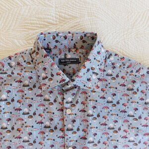 NWT Saks Fifth Ave novelty mushroom print slim fit SS button front dress shirt M